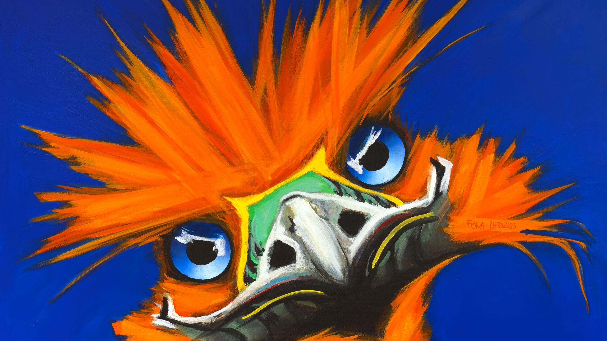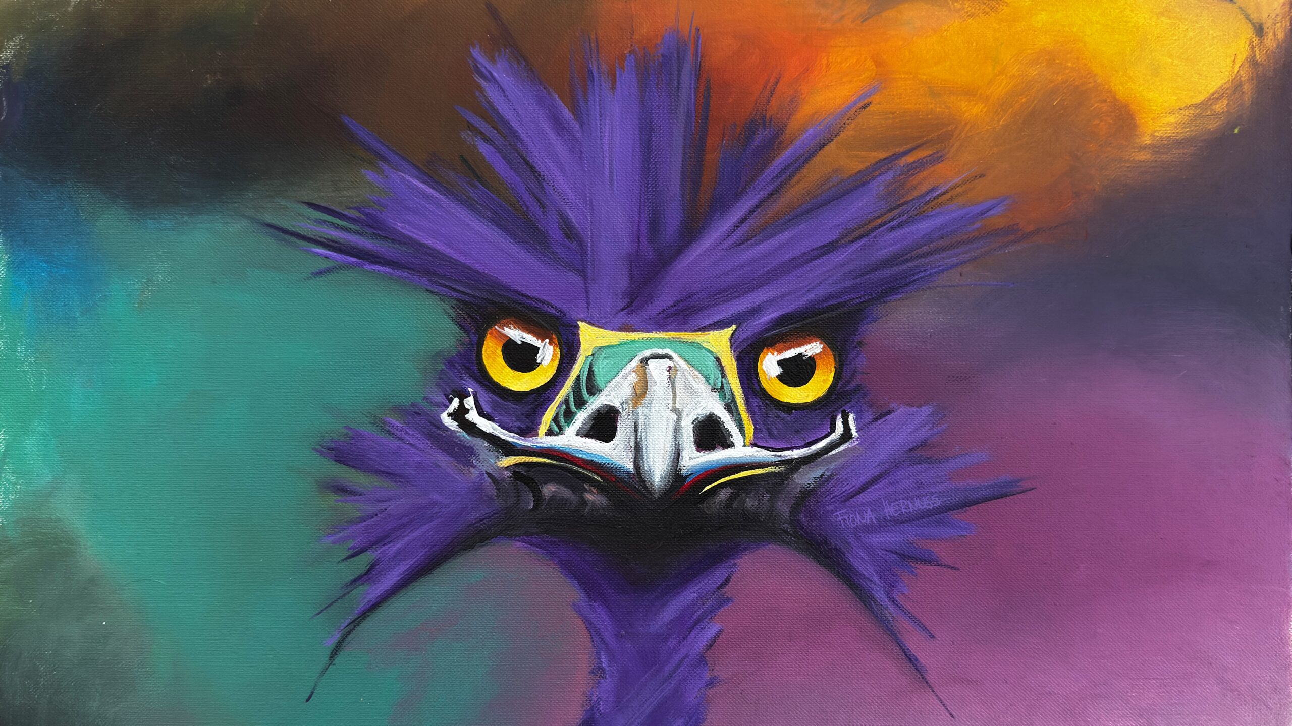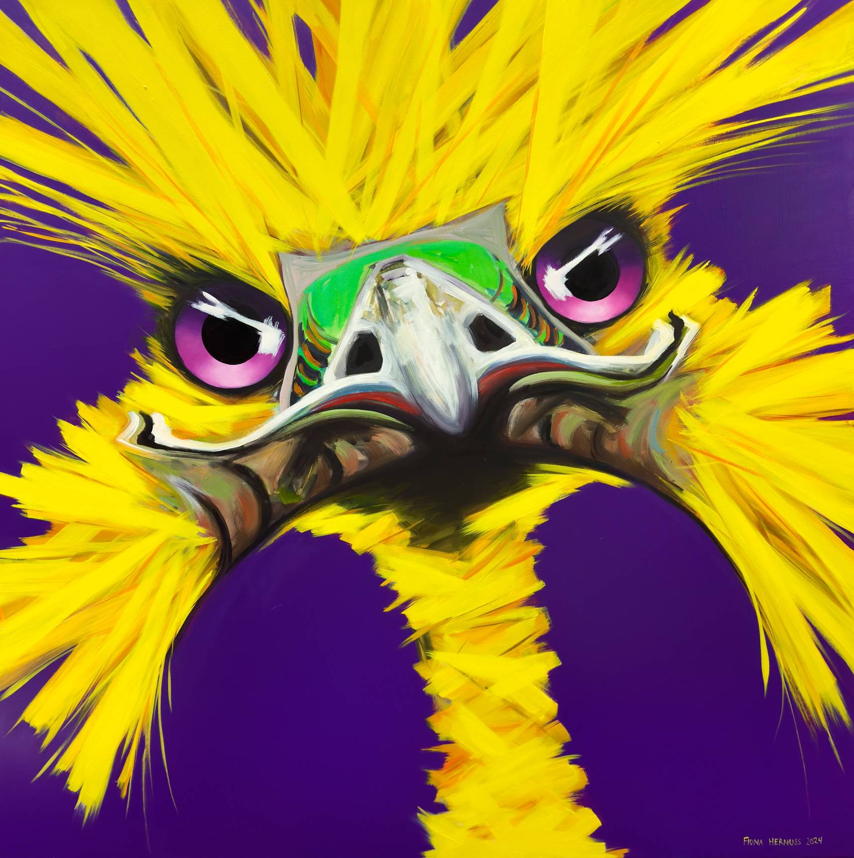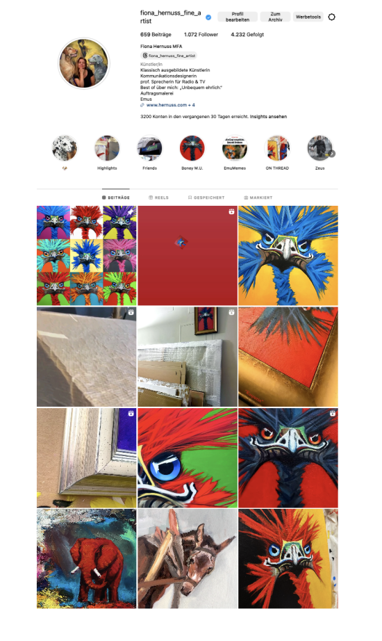 Im Zentrum ihrer Arbeit steht eine wiederkehrende Figur – der Emu –, der sich zu einer eigenständigen und klar erkennbaren Bildsprache entwickelt hat.